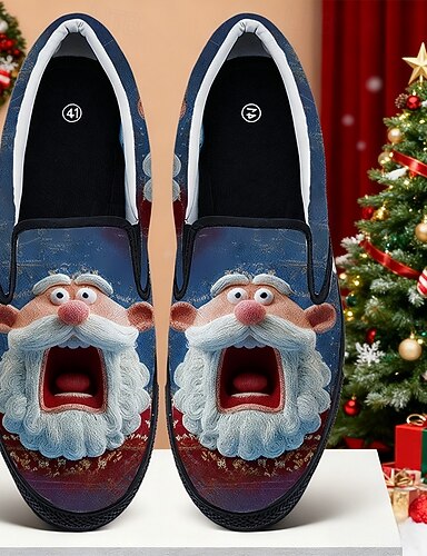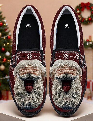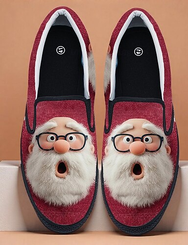 scarpe slip-on natalizie da uomo a forma di Babbo Natale: divertenti design stampati in 3D, comode e accoglienti, perfette per feste di Natale e riunioni festive