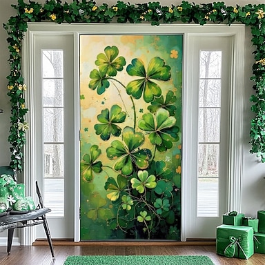 Festa di San Patrizio Poster Copertura della porta Banner per esterni Trifoglio Carino 3D Da serata Dormitorio Stanza per adolescenti Dormitorio universitario Ragazzi Man Cave Frat Bedroom Sfondi di