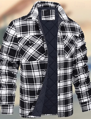 Per uomo Giacca invernale Imbottito Shacket Giornaliero Da mare Tenere al caldo Anti-usura Tasche Autunno inverno A quadri Di tendenza Classico Bavero Standard Nero Vino Blu marino Azzurro cielo