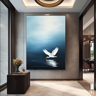 dipinto a mano dipinto astratto blu oceano dipinto paesaggio lacustre dipinto uccelli dipinto mare blu scuro decorazione da parete soggiorno