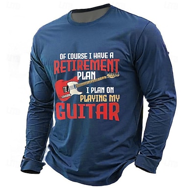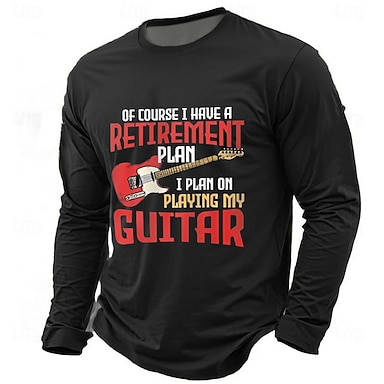 T-shirt Grafica Uomo Divertente Il Mio Piano Pensionistico È Suonare La Chitarra. Maglietta Maniche Corte Hobby Musicista Regalo