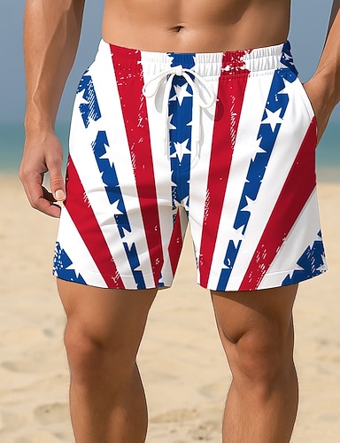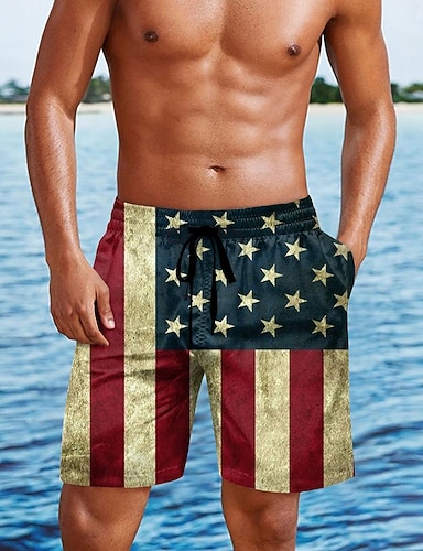 Shorts da bagno patriottici con bandiera americana per uomo pantaloni da spiaggia costumi da bagno altezza media streetwear vacanza hawaiana indumenti da spiaggia tasche laterali fodera in rete