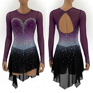 Vestito da pattinaggio artistico Per donna Da ragazza Pattinaggio sul ghiaccio Vestiti Viola Foro per pollice tintura sfumata Elevata elasticità Professionale Competizione Vestiti da pattinaggio sul