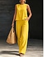 Da donna Misto cotone Set ispirati al lino Set da due pezzi Senza Maniche Girocollo Tinta unica Angosciato Nero Bianco Giallo Estate Vestibilità comoda