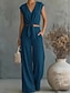 Per donna Tuta Streetwear Tinta unica Senza Maniche Gamba larga Scollo a V Tasca Quotidiano Vacanza Vestibilità regolare Bianco Estate