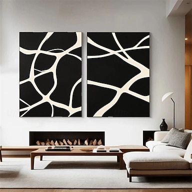 pittura a olio astratta fatta a mano, pittura astratta in bianco e nero, arte murale moderna, arte murale contemporanea, set di 2 dipinti