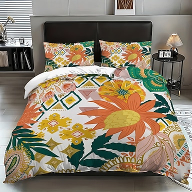 Set copripiumino stampato con motivo bohémien, set di biancheria da letto in stile hotel da 3 pezzi, include 1 copripiumino e 2 federe, tessuto morbido e felpato, piumone non incluso.
