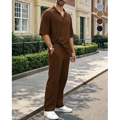 Per uomo Tuta da Ginnastica Tuta da Jogging Tute da allenamento Coulisse 2 Pezzi Tinta unita T-shirt e pantaloni da corsa Set di Abbigliamento Sportivo Estate Primavera Nero Marrone Allenamento in