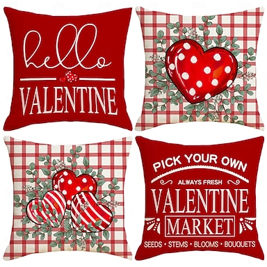 Set di cuscini per San Valentino in lino con stampa scozzese, motivo a cuore, cuscino decorativo per la vita, copridivano per soggiorno, arredamento per la casa, cuscino da comodino