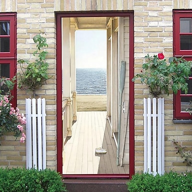 Copriporta per porta in legno da spiaggia, arazzo per porta, decorazione per tende per porta, fondale per porta, banner per porta d'ingresso, forniture per decorazioni per feste in fattoria