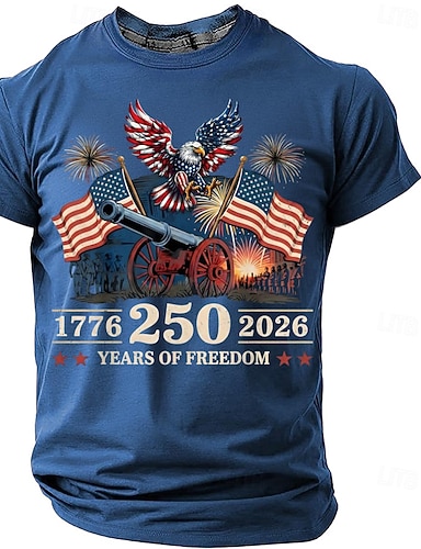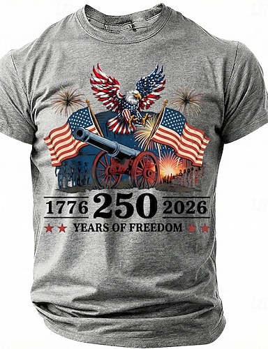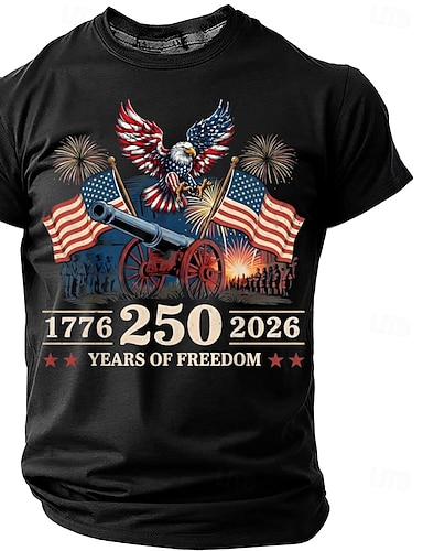 4 luglio 2026 250° Giorno della Memoria T-Shirt da Uomo Patriottico Patriot Stampa 3D Bandiera Americana Veterano a Maniche Corte Street