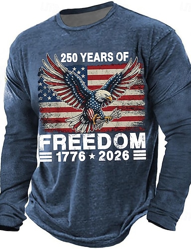 4 luglio 2026 250° Memorial Day Maglietta Uomo Designer Stampa 3D Bandiera Americana Collo a Giro a maniche lunghe Casual Quotidiano Strada