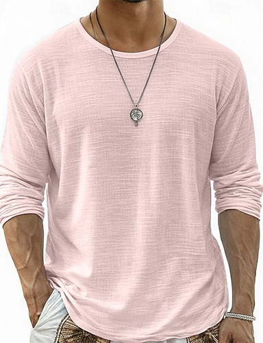 Per uomo Maglietta Maglietta in lino Manica Lunga Girocollo Estate Primavera Tutte le stagioni Tinta unica Semplice Quotidiano Casual Stile da Strada Puro Casuale All'aperto Streetwear Blu Nero Bianco