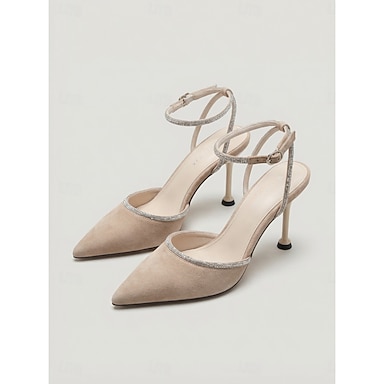 Décolleté da donna con tacco a spillo, punta affusolata e cinturino alla caviglia con strass - eleganti décolleté in camoscio per feste serali & nozze