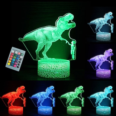 dinosauro giocattoli 16 colori 3d lampada da scrivania illusione con luce notturna telecomandata per regali per bambini decorazioni da comodino camera da letto