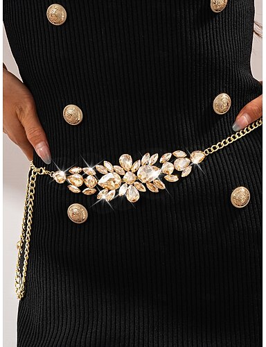 Catena da vita con strass di cristallo da donna - accessorio cintura in oro scintillante per eleganti feste di Capodanno, balli &eventi di danza formale