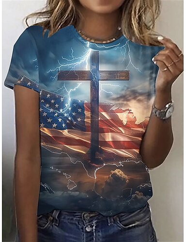 Giorno dell'Indipendenza Americana Per donna Maglietta Stampato Grafico Bandiera Americana Vintage Elegante Classico Manica Corta Girocollo Top Regolari Quotidiano Weekend Blu Nero Bianco Rosso