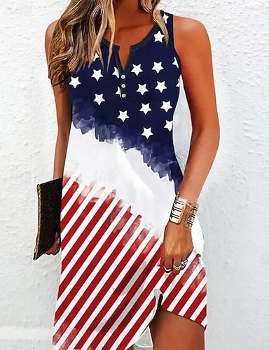 Giorno dell'Indipendenza Maglietta Canotta da Donna Bandiera Elegante Casual Senza Maniche V Collo Crop Tops Da Giorno Stampa Viola Verde Beige Estate Primavera