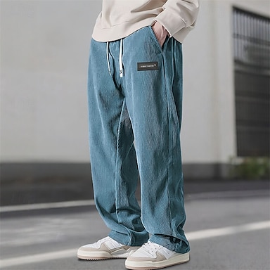 Per uomo Pantaloni Pantaloni in velluto a coste Pantaloni Larghi Pantaloni della tuta a gamba dritta Coulisse Elastico in vita Tinta unica Comodità Lunghezza intera All'aperto Quotidiano