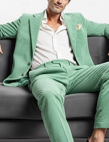 Uomo Abito di velluto Casuale Affari Nero Verde scuro Autunno Tuta Bavero a lancia Quotidiano Casual Tinta unita Vestibilità su misura 2 pezzi Monopetto a un bottone