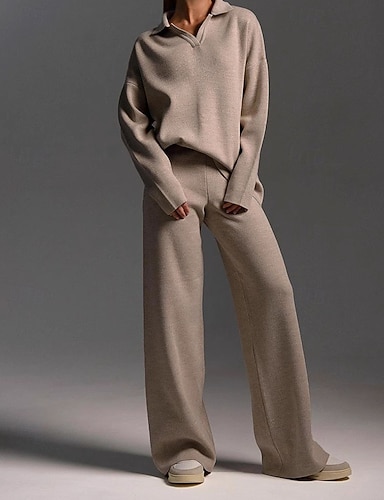 Per donna Set di Pantaloni Bolero Top Manica Lunga Colletto a Camicia Tinta unica Patchwork Elegante Moda Streetwear Casuale Quotidiano All'aperto Blu Marron Nero Primavera Vestibilità regolare