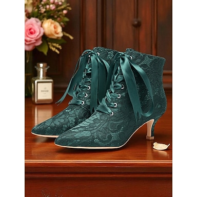 stivaletti da donna verdi con lacci, nastro di raso e tacco a gattino - stivali eleganti in stile vittoriano vintage per donne, perfetti per matrimoni, feste Gatsby &eventi formali