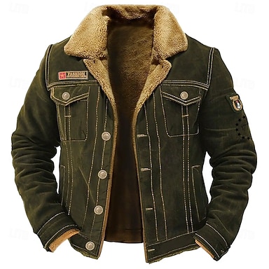 Per uomo 1776 Giacca in Pile Giacca Cargo Giacca Sherpa Tattico Calore Termico Vintage All'aperto Casa Ricamato Tasche Multiple Cappotti invernali Autunno Inverno Collo rovesciato in pile Manica Lunga