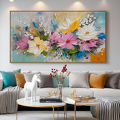 dipinto a mano, dipinto a olio su tela, originale, grande, dipinto murale, dipinto di fiori colorati, pianta, paesaggio, divano moderno, sfondo, decorazione da parete
