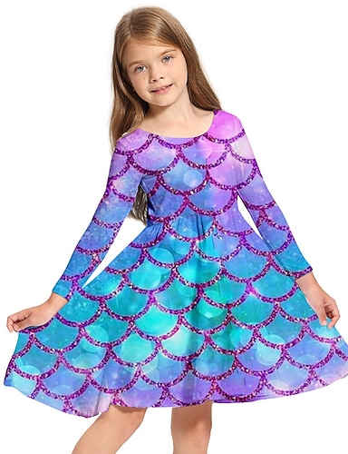 vestito animale 3D da ragazza a maniche lunghe con stampa 3D sport invernali autunnali & vacanza quotidiana all'aperto carino casual bellissimo bambino 3-12 anni abito casual abito a linea sopra il