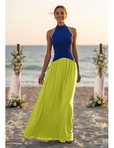 Linea ad A Lunghezza al pavimento Abito da invitata a nozze Abito Formale Abito da sera Abiti per invitati a matrimoni Elegante Senza Maniche All'americana Formale Chiffon Elasticizzato Tessuto