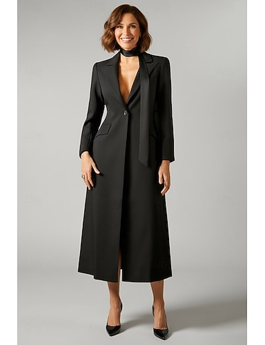 Per donna Abito da smoking Linea ad A Affari Formale Ospite di nozze Tessuto Elasticizzato Elegante Manica Lunga Lunghezza Midi Dentellato Risvolto a punta Monopetto Un Bottone