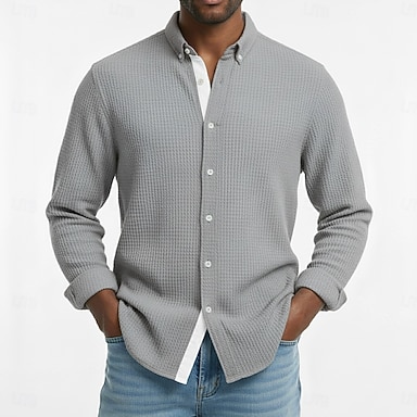 Per uomo Camicia Camicia a nido d'ape Camicia casual Camicia con colletto alla coreana Camicia con Bottoni Blu Rosa Verde Grigio Manica Lunga Semplice Collo alla coreana Casuale Quotidiano Patchwork