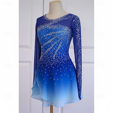 Abito da pattinaggio artistico Per donna Ragazze Pattinaggio sul ghiaccio Vestito Bianco / Nero Blu / bianco Foro per il pollice tintura sfumata Rete Spandex Elasticizzato Allenamento Professionale