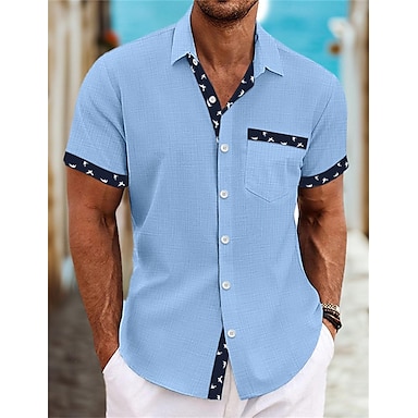 Per uomo Camicia Set Camicia Camicia Estiva Camicia casual Camicia da Spiaggia Camicia con Bottoni Nero Bianco Blu reale Grigio chiaro Azzurro Manica Corta Semplice Bavero Vacanza Camicia hawaiana