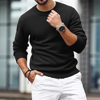 Per uomo Felpa Maglione A Coste Maglia Top Regolari Lavorato a maglia Slim Fit Semplice Girocollo Maglieria Moda Casuale Abbigliamento quotidiano Abbigliamento Primavera & Autunno Nero Bianco S M L