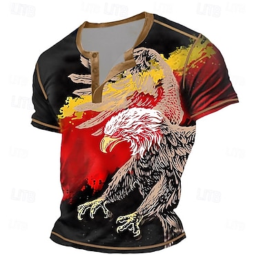 Per uomo Aquila Maglia Henley Maglietta Manica Corta Vintage Moda Designer All'aperto Casuale Quotidiano Estate Primavera & Autunno Nero Grigio Blu marino Henley Maglietta Henley