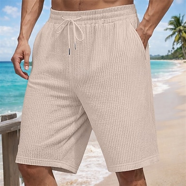 Per uomo Shorts Shorts di Lino Shorts da Spiaggia Pantaloncini di seersucker Pantaloncini strutturati Coulisse Elastico in vita Semplice Comodità Traspirante Sopra il ginocchio Quotidiano All'aperto