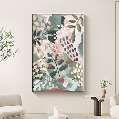 pittura a olio fatta a mano su tela decorazione di arte della parete pittura astratta colorata di piante e fiori pittura minimalista originale per la decorazione domestica con cornice allungata /