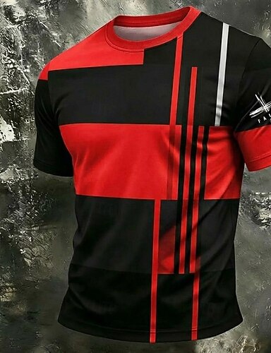 T-shirt da uomo moderna con stampa grafica a gradiente rosso e nero, girocollo, maniche corte, con croce, ideale come regalo per lui, abbigliamento firmato.