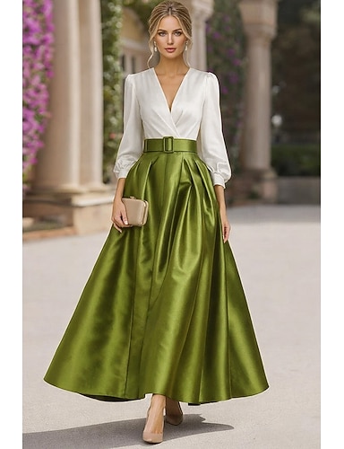 Per donna Abito da smoking Abito da ballo Linea ad A Formale Ospite di nozze Raso Elegante Manica 3/4 Lunghezza al pavimento Lunghezza alla caviglia Dentellato Doppiopetto