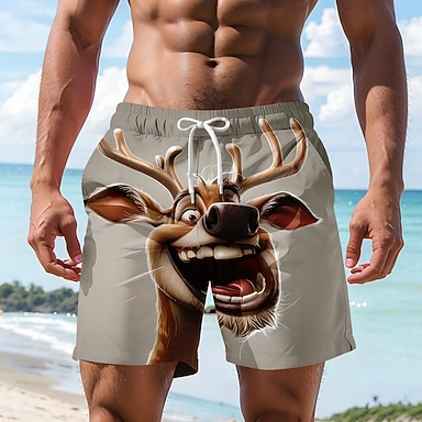 Per uomo Cartoni animati Renna Divertente Costumi da bagno Pantaloncini da mare Pantaloncini da Surf Misura del girovita medio Hawaiano Vacanza al Mare Tasche Laterali fodera in rete Coulisse