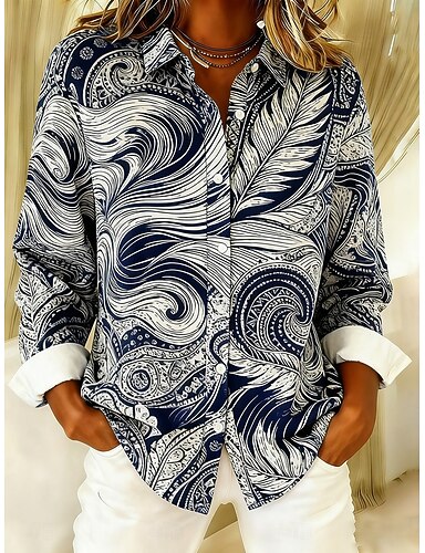 Camicia da donna Elegante Top Formale Camicia da lavoro Grafica Paisley Elegante Stile Moderno Manica Lunga Collo Top Regolari Lavoro Feste Sera Abbigliamento Quotidiano Blu Autunno Inverno Primavera