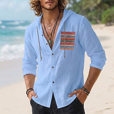 Per uomo Camicia Camicia di lino Camicia Estiva Camicia da Spiaggia Camicia con Bottoni Camicia con cappuccio Boho Casuale Vacanza Blu Bianco Rosa Rosso Manica Lunga Con Cappuccio Estate Primavera