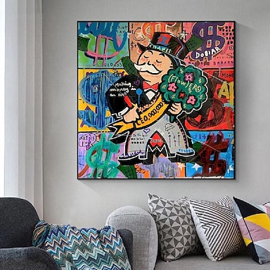 Pittura A Olio Fatta A Mano Dipinta A Mano Wall Street Art Astratta Alec Monopoly Pittura Moderna Decorazione Della Casa Arredamento Tela Arrotolata No Frame Unstretched