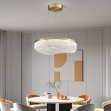 Lampadario di cristallo per sala da pranzo, camera da letto, lampadario rotondo in resina e rame, lampadario a sospensione di lusso in oro