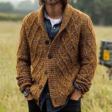 Per uomo Maglione jacquard Cardigan Maglione Maglione corto A coste Maglia Standard Abbottonare Lavorato a maglia Vintage ▾ Risvolto sciallato Di tendenza Classico Da tutti i giorni Appuntamento