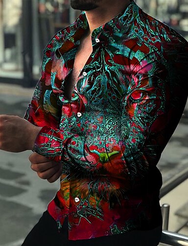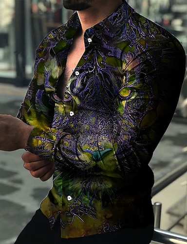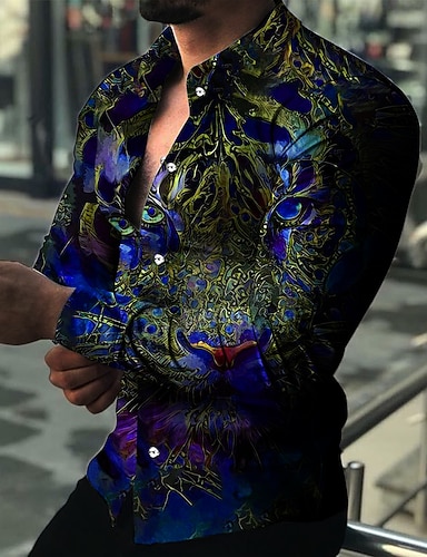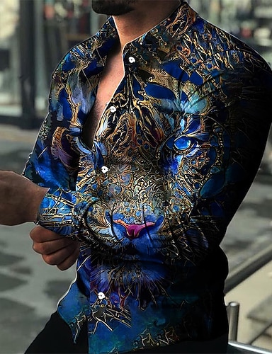 Per uomo Leone Camicia Camicia con bottoni Manica corta Informale Scuro Giornaliero Per eventi Estate Collo ripiegabile Abbottonare Stampa 3D Blu