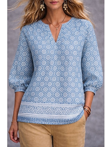 Per donna Camicia casual Blusa Stampato Floreale Grafico Elegante Vacanza Casual Manica 3/4 Scollo a V Top Regolari Lavoro Spiaggia Ferie Blu Rosa Verde Estate Primavera Autunno Inverno