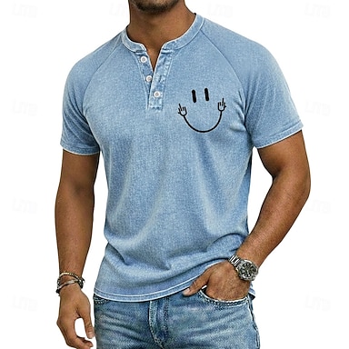 Per uomo Grafico Vintage Lavato Maglietta Top Henley Camicia lavata Manica Corta Vintage Angosciato Casuale Quotidiano All'aperto Estate Primavera Tutte le stagioni Blu chiaro Viola Grigio Henley