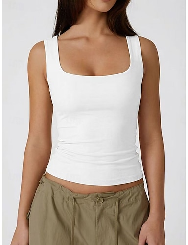 Per donna Canotta Maglietta senza maniche Maglietta Tinta unica Moda Classico Casual Senza Maniche Collo a U Top Regolari Quotidiano Uscire Weekend Nero Bianco Vino Grigio scuro Albicocca Estate